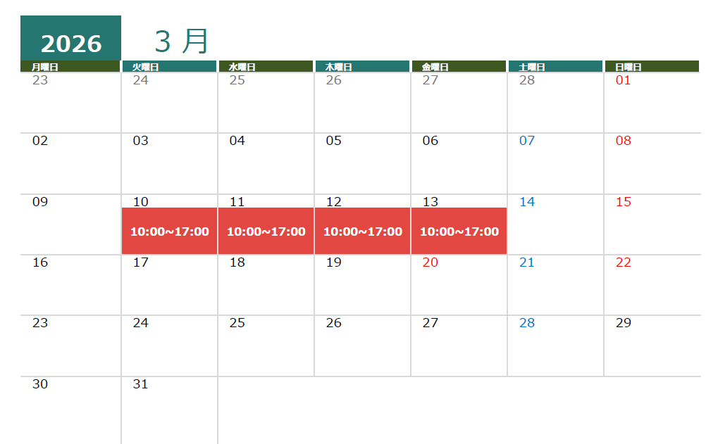 3/10㈫~13㈮